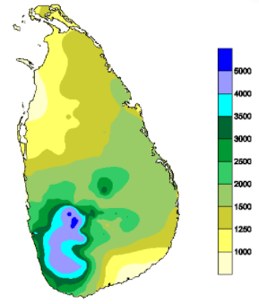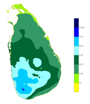 Niederschläge in Sri Lanka haben vielfältige Ursachen. Monsun-, Konvektions- und Expressionsregen machen einen grossen Teil der jährlichen Niederschläge aus. Der mittlere jährliche Niederschlag variiert von unter 900mm in den trockensten Teilen (Südosten und Nordwesten) bis über 5000mm in den feuchtesten Teilen (Westhang des zentralen Hochlands).