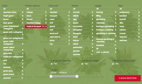 Click on the link below to go to the database, then press Filter Selection Criteria and then go to Product Group > Tropical Bouqet and hit the Button Show Selection